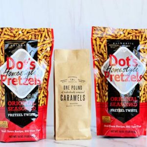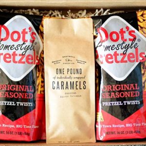 Back Story. We've partnered with our friends at Dot's Pretzels to bring you this tasty Salty + Sweet Combo Snacking Set in your choice of caramel flavors. -